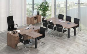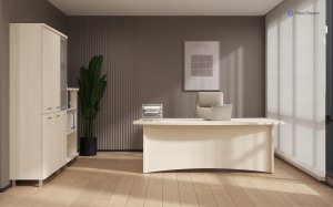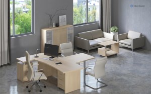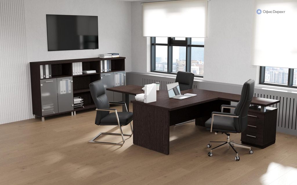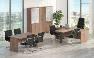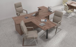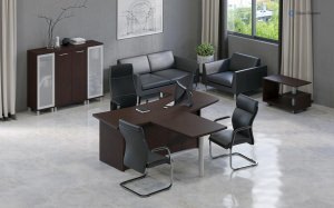 Серия мебели для кабинетов руководителя «First» разработана с целью оптимизации рабочего пространства руководителя. В состав серии входят криволинейные и прямые столы, разнообразные варианты шкафов и стеллажей, а также брифинги и тумбы.