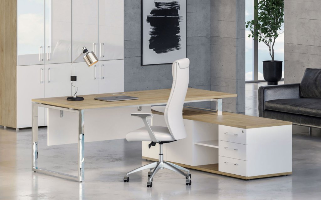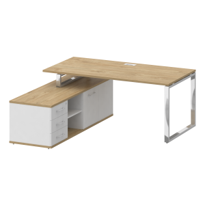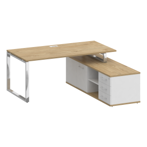 Сборно-разборная архитектура комплекта обеспечивает гибкость планировки. Опорная тумба со встроенной греденцией дополняет функциональную конфигурацию, предоставляя оптимальное пространство для хранения. Чистые линии, нержавеющие элементы и минималистичная эстетика формируют уникальную концепцию руководящего пространства. Riva Shiftr для тех, кто ценит прогрессивный подход в организации рабочей среды.