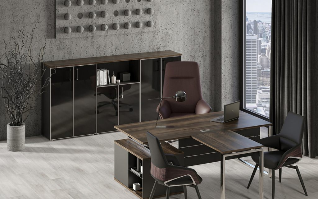 Воплощение интеллектуальной эстетики хай-тек в бизнес-пространстве. Хромированный металлокаркас создает визуальную легкость и подчеркивает технологичность коллекции.